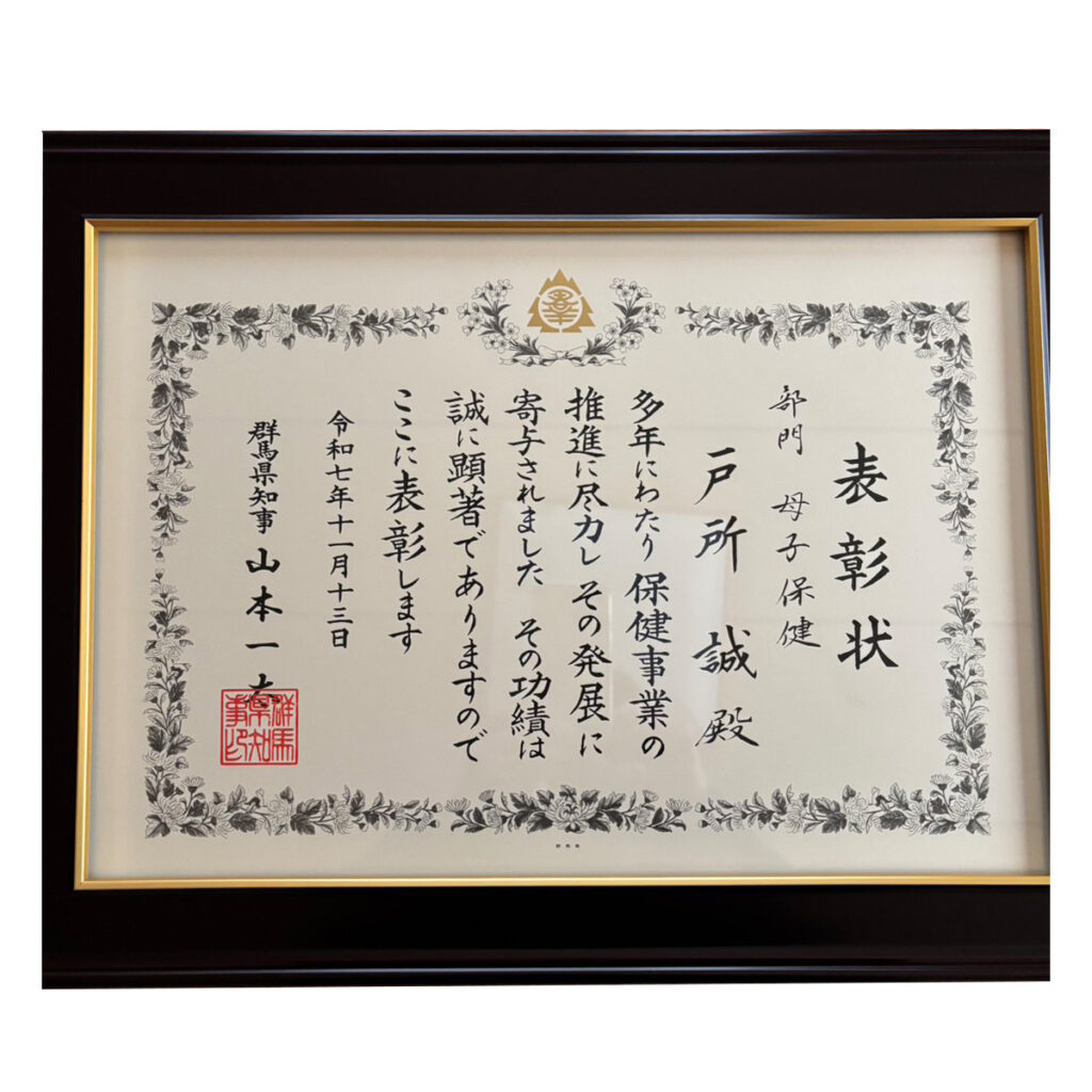 この度、当院の院長が令和7年度保健事業等功労者知事表彰を受賞いたしました。 11月13日、群馬県庁昭和庁舎にて表彰式が行われ、公衆衛生関係事業の推進活動における長年の功績が認められました。 これもひとえに、日頃から当院をご利用いただいている皆さまのご支援とご協力の賜物と、心より感謝申し上げます。 今後も地域医療に貢献できるよう、スタッフ一同努めてまいります。